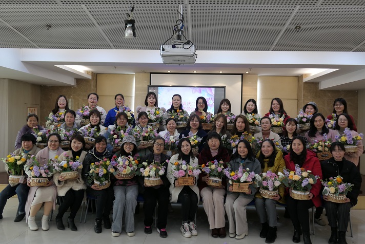 在两名花艺师的指导下,全体女职工现场学习了花语和插花技艺。大家跟着老师,精心选花、剪花、配花、搭配颜色,设计层次,将原本普普通通的花草,变成了一件件神采飞扬、创意十足的艺术品。每个人脸上都洋溢着欣喜欢快的笑容,鲜花与笑脸交相辉映,节日的喜庆与鲜花的芬芳相互交融。大家手捧鲜花,纷纷留下自已最靓丽的瞬间